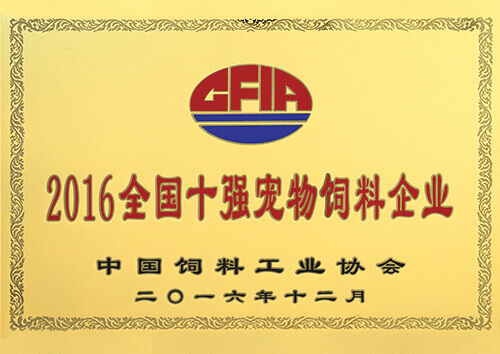 公司被評(píng)為“2016全國(guó)十強(qiáng)飼料企業(yè)”稱號(hào)