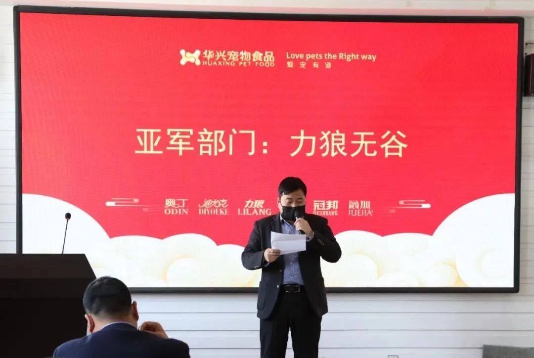 伴隨著鼓舞人心的開場音樂,主持人宣布華興寵物食品表彰大會正式開始。主持人公示銷售部增長率排名名單并宣讀銷售部的前三名。